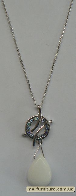 • Кулон цепочка №11 серебро камень белый листик  (20см)