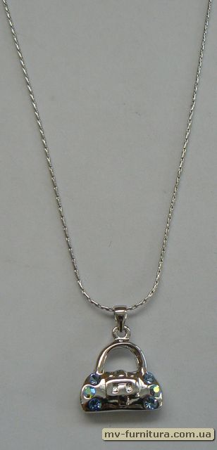 »  »  »  » Кулон цепочка серебро камень голубой сумочка (22см)