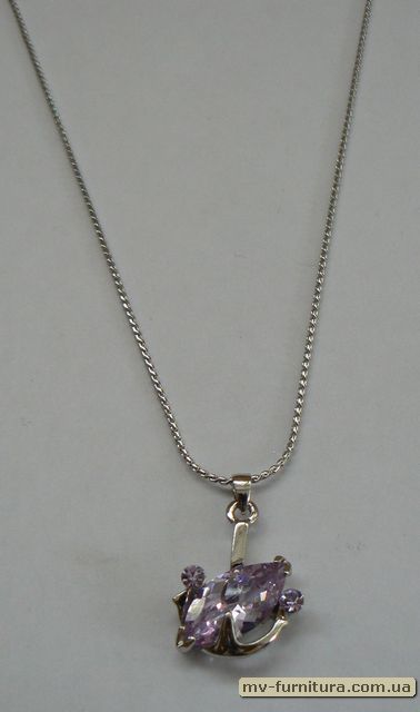 • Кулон цепочка №11 серебро камень белый листик  (20см)