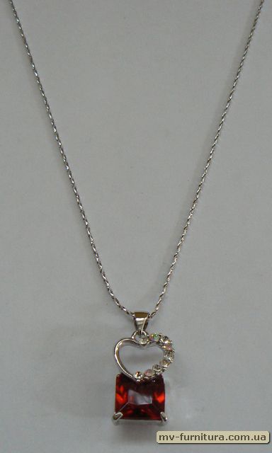 »  »  »  » Кулон цепочка серебро камень красный сердце/квадрат (22см)