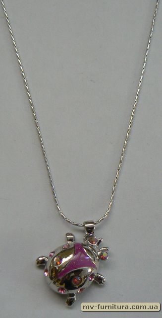 »  »  »  » Кулон цепочка серебро камень розовый божья коровка (22см)