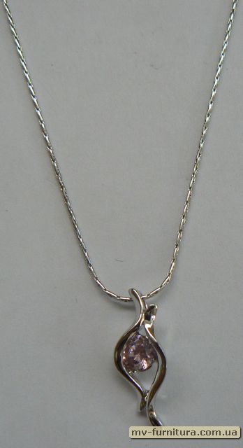 »  »  »  » Кулон цепочка серебро камень розовый глаз (22см)