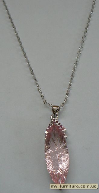 »  »  »  » Кулон цепочка серебро камень розовый капля (22см)