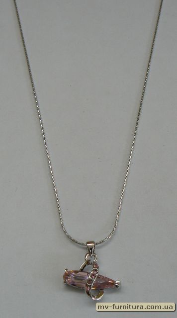 »  »  »  » Кулон цепочка серебро камень розовый капля/полоска (22см)