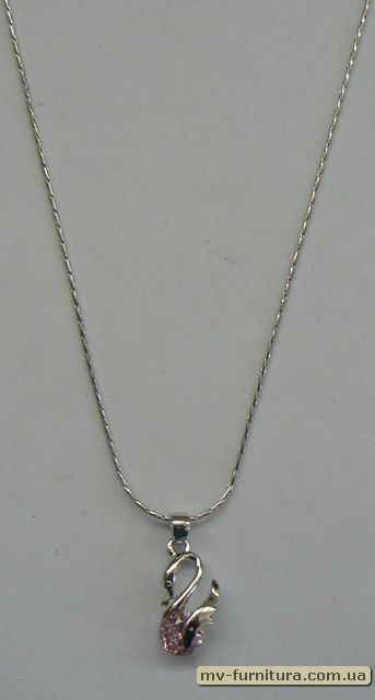 »  »  »  » Кулон цепочка серебро камень розовый лебедь (22см)