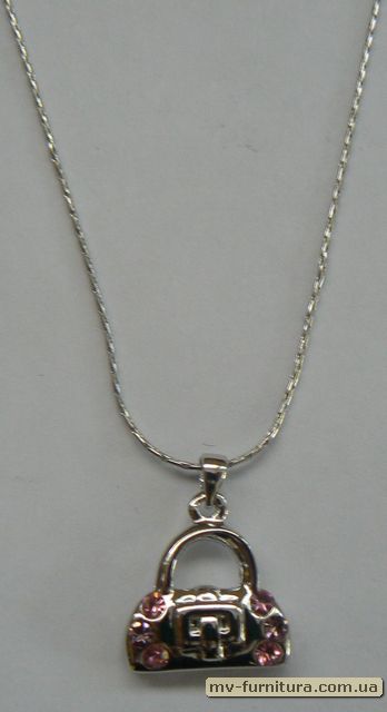 »  »  »  » Кулон цепочка серебро камень розовый сумочка (22см)