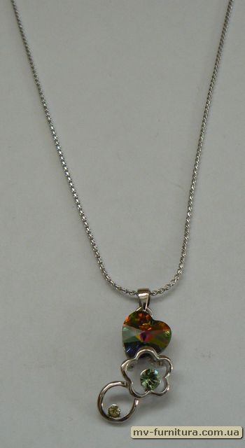 »  »  »  » Кулон цепочка серебро камень зеленый сердце/цветок (22см)