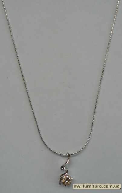• Кулон цепочка №11 серебро камень белый листик  (20см)