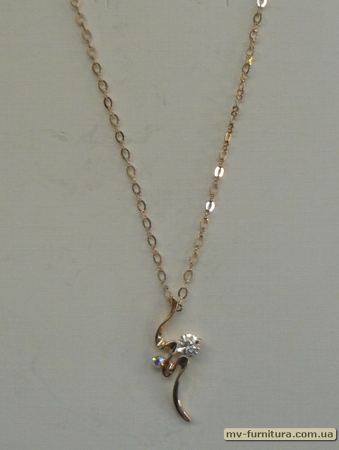 »  »  »  » Кулон цепочка золото камень белый 2камня/волна (22см)
