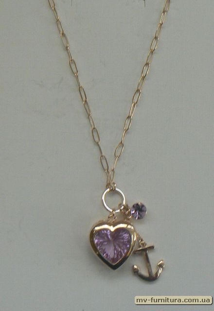 »  »  »  » Кулон цепочка золото камень фиолетовый сердце/якорь (22см)