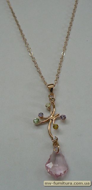 »  »  »  » Кулон цепочка золото камень розовый паучок/капля (22см)