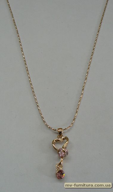 »  »  »  » Кулон цепочка золото камень розовый сердце/2камня (22см)