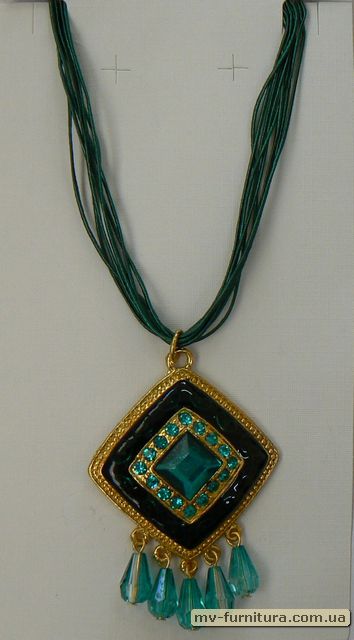 »  »  »  » Кулон веревка эмаль камень зеленый ромб/5капель (22см)