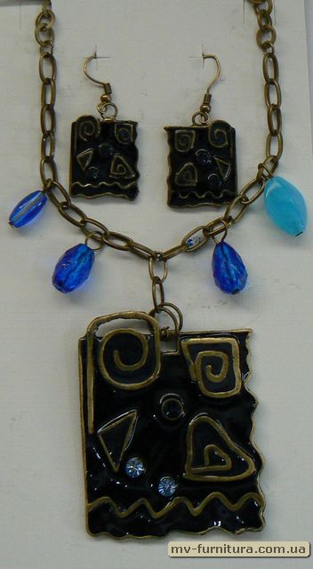»  »  »  » Кулон+серьги цепь+пластик эмаль камень голубой пластина/3камня (22см)