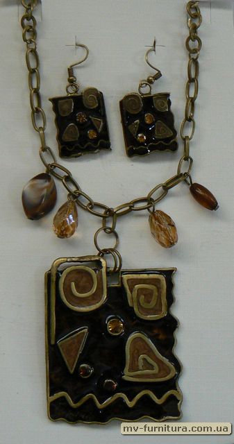 »  »  »  » Кулон+серьги цепь+пластик эмаль камень коричневый пластина/3камня (22см)
