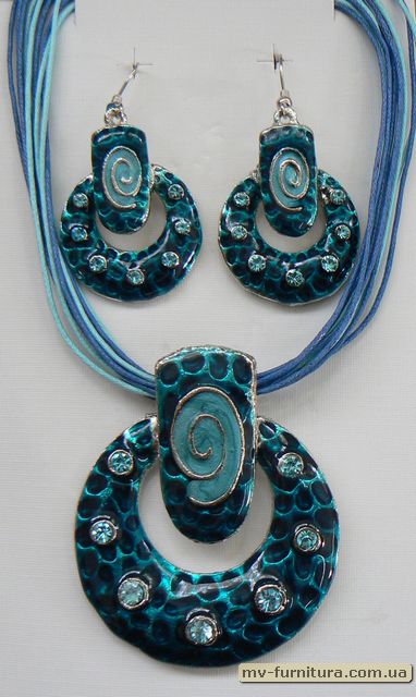 »  »  »  » Кулон+серьги веревка эмаль камень голубой круг/7камней
