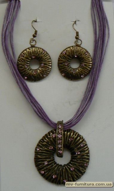 »  »  »  » Кулон+серьги веревка эмаль камень розовый круг