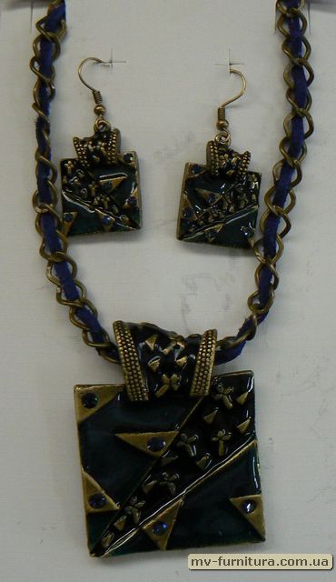 »  »  »  » Кулон+серьги веревка+цепь эмаль камень синий пластина/5камней (22см)