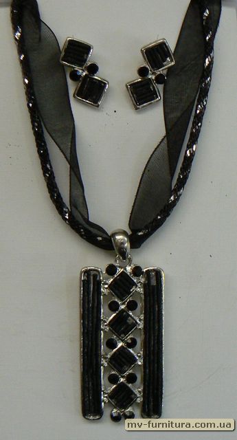 »  »  »  » Кулон+серьги веревка+лента эмаль камень черный пластина/10камней (22см)