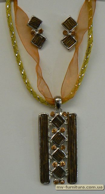 »  »  »  » Кулон+серьги веревка+лента эмаль камень желтый пластина/10камней (22см)