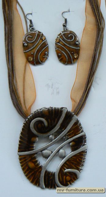 »  »  »  » Кулон+серьги веревка+лента эмаль коричневый овал