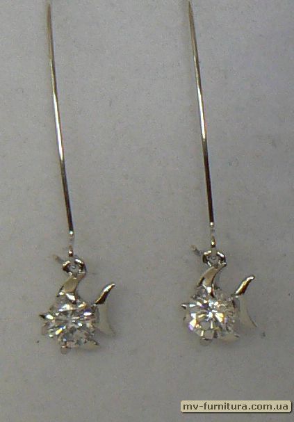 »  »  »  » Серьги декор серебро камень белый рыбка