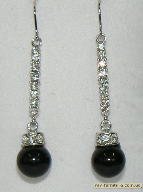Серьги декор серебро камень белый жемчуг черный 5 см. [ 1 ]