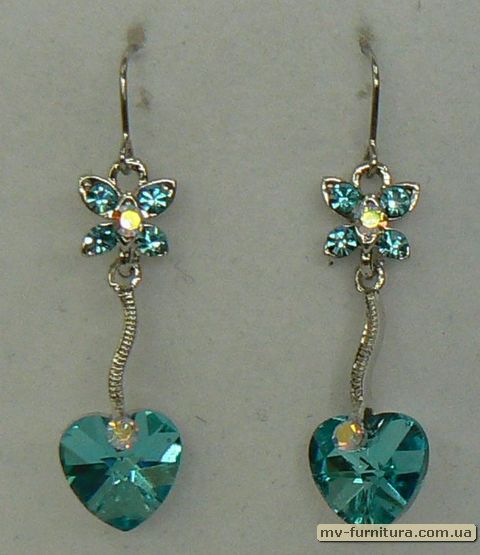 Серьги декор серебро камень голубой цветок/сердце 4 см. [ 1 ]