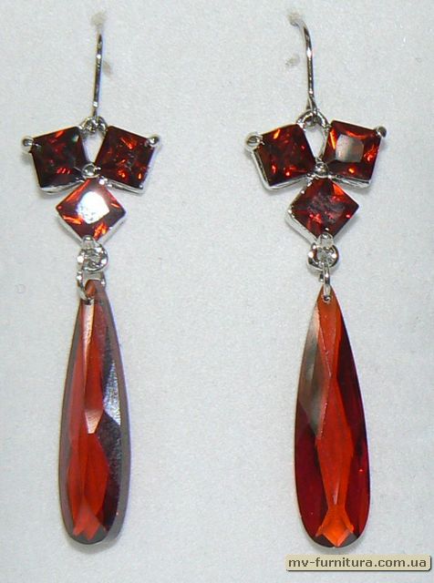 »  »  »  » Серьги декор серебро камень красный 3камня капля