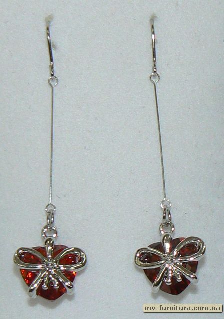 Серьги декор серебро камень красный сердце бант [ 1 ]