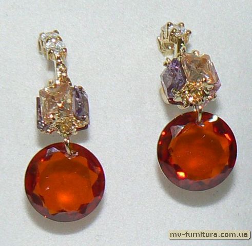 »  »  »  » Серьги декор золото камень цветной куб монетка красная 3 см.