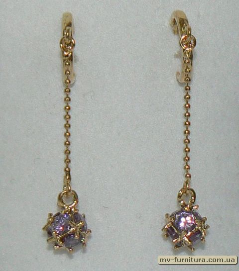 »  »  »  » Серьги декор золото камень фиолетовый цепи/шар 5 см.