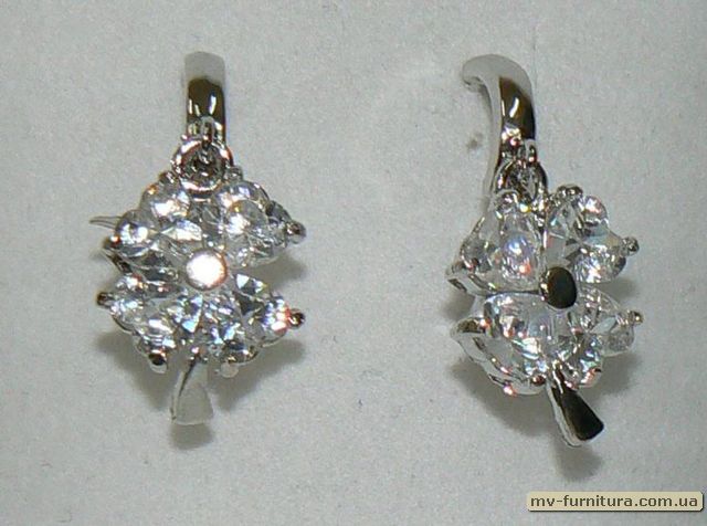 Серьги класика серебро камень белый цветок 15 мм. [ 1 ]