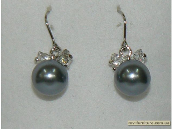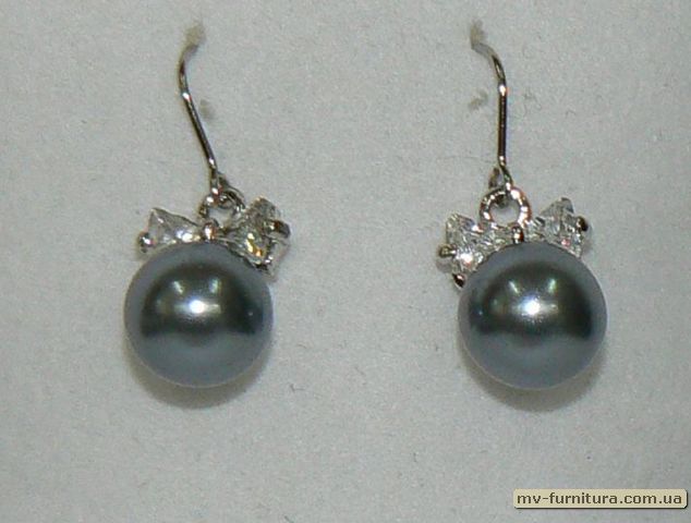 »  »  »  » Серьги класика серебро камень белый цветок жемчуг серый