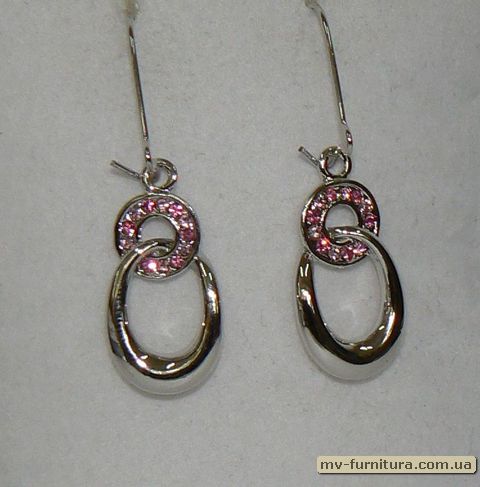 Серьги класика серебро камень розовый 2кольца [ 1 ]