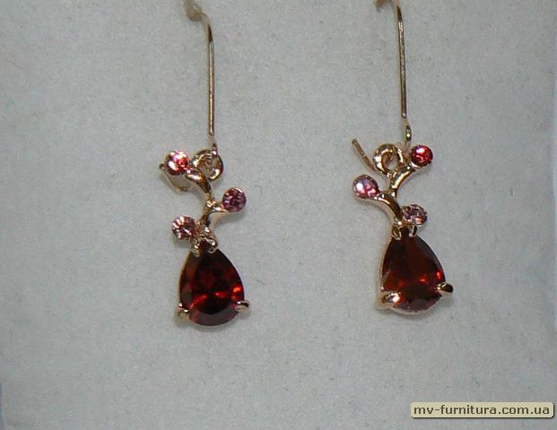 »  »  »  » Серьги класика золото камень красный 3камня/капля