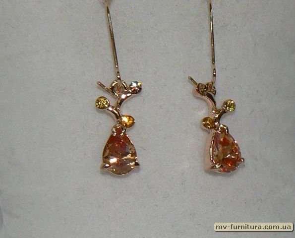 Серьги класика золото камень желтый 3камня/капля [ 1 ]
